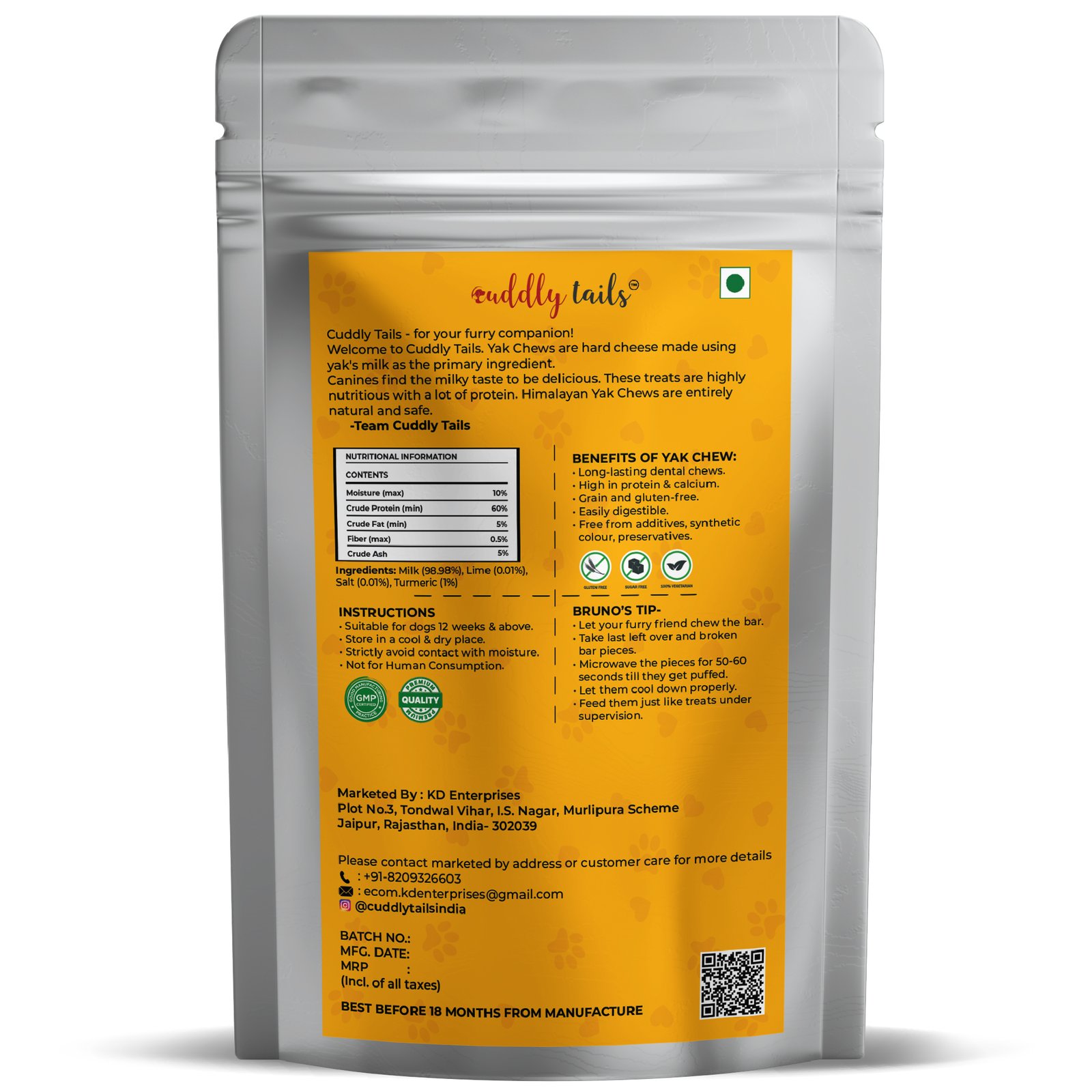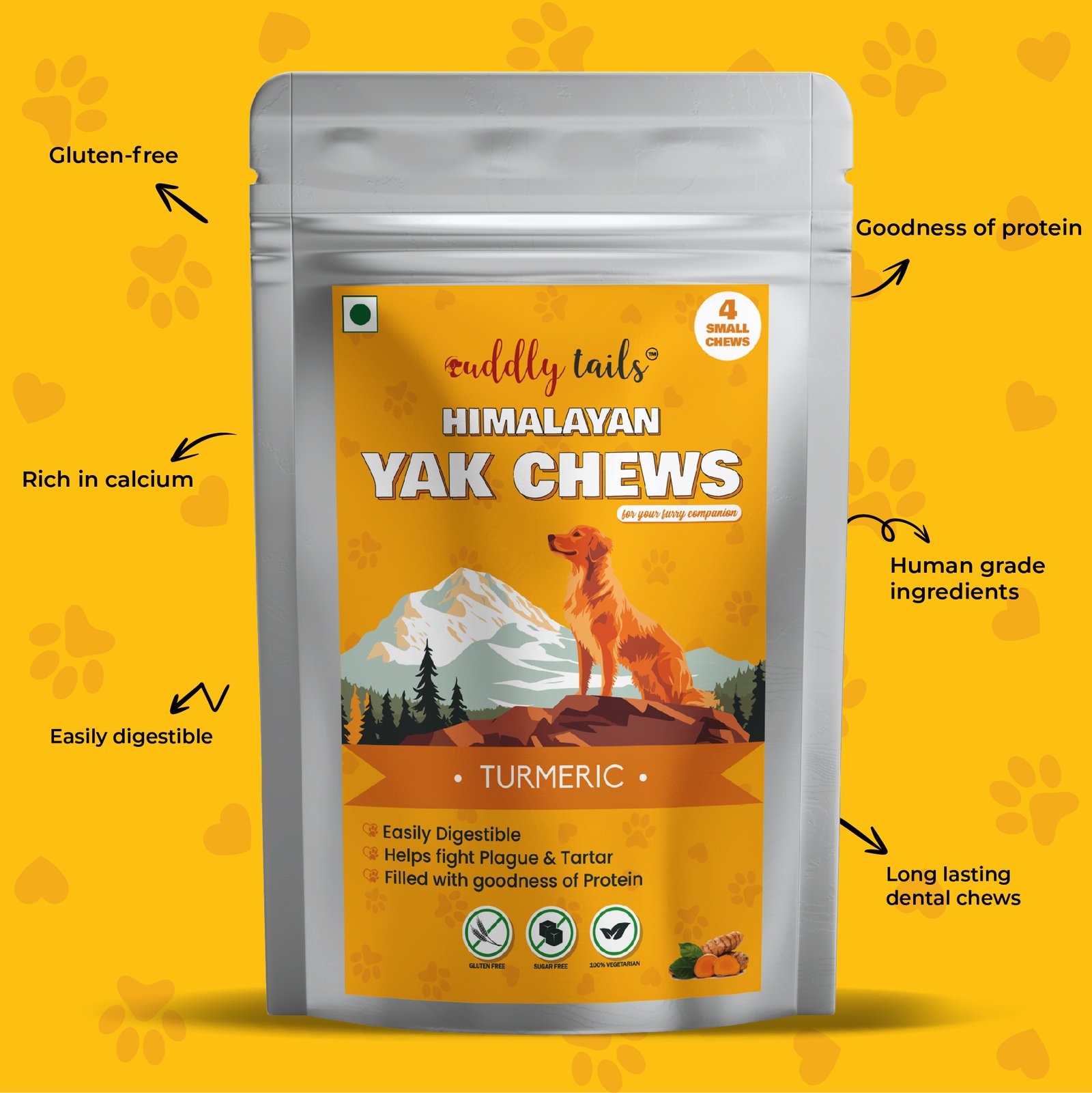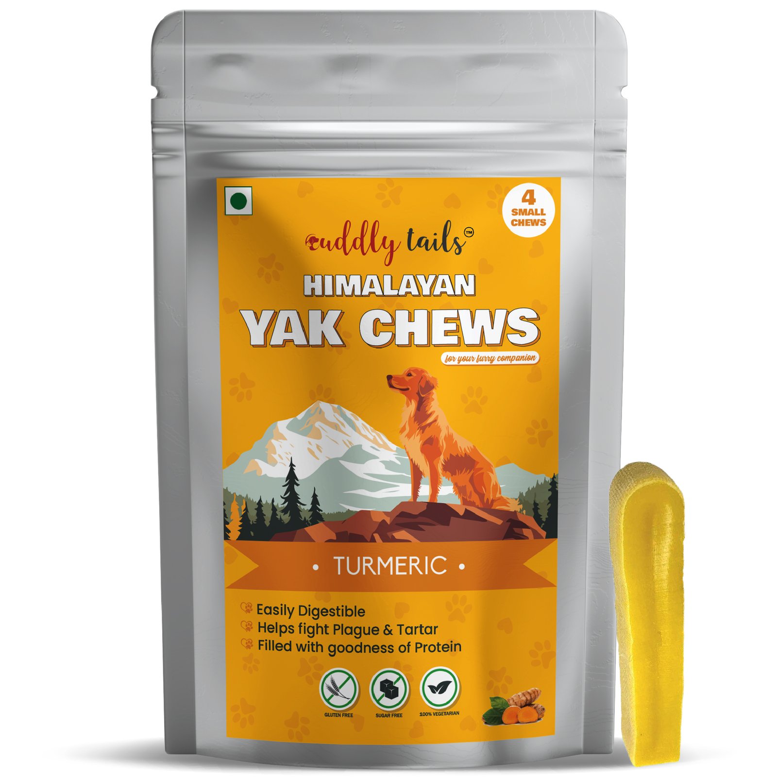 CuddlyTails Yak Chew – Turmeric Flavor, Yak Cheese, All-Natural & Long-Lasting Chew for Dogs