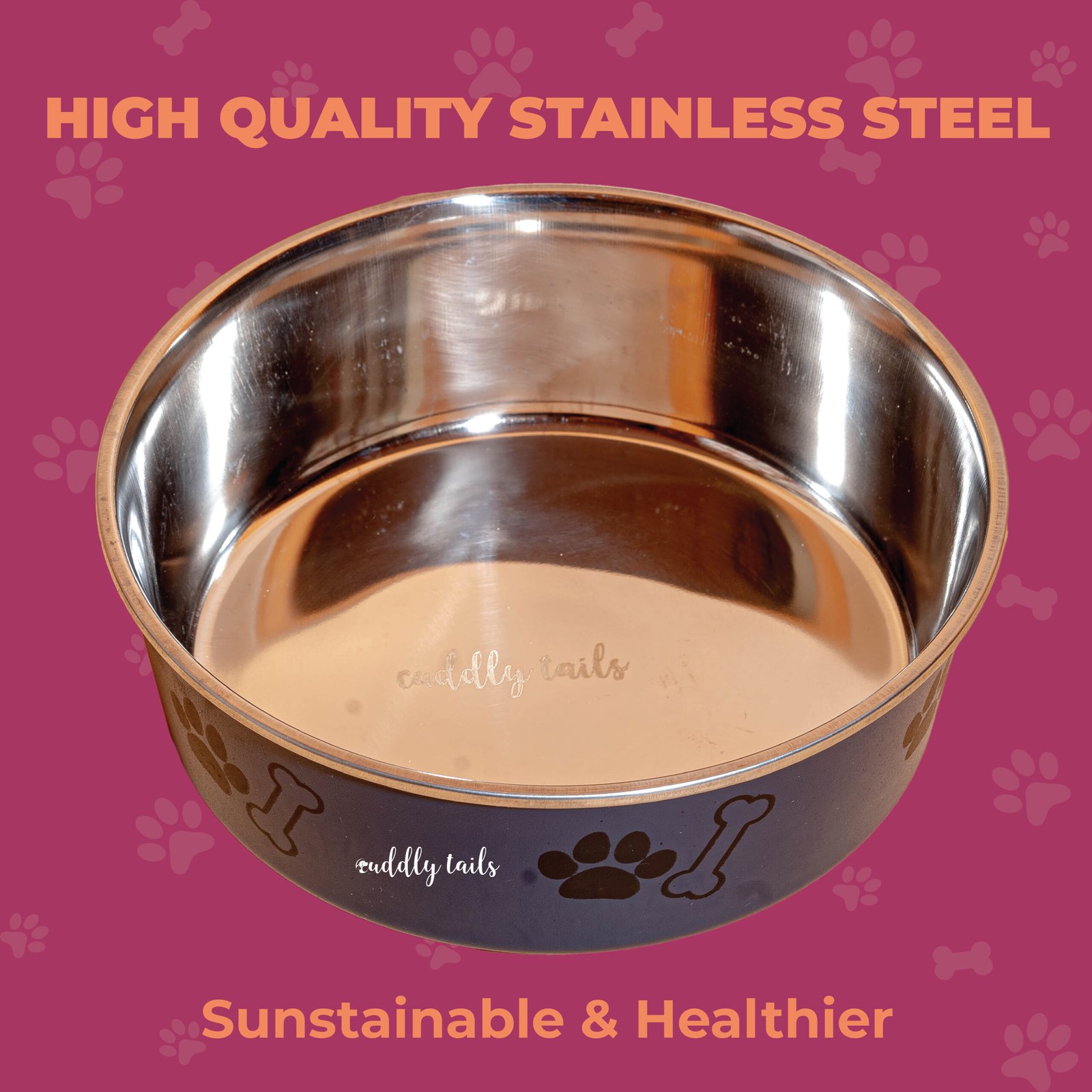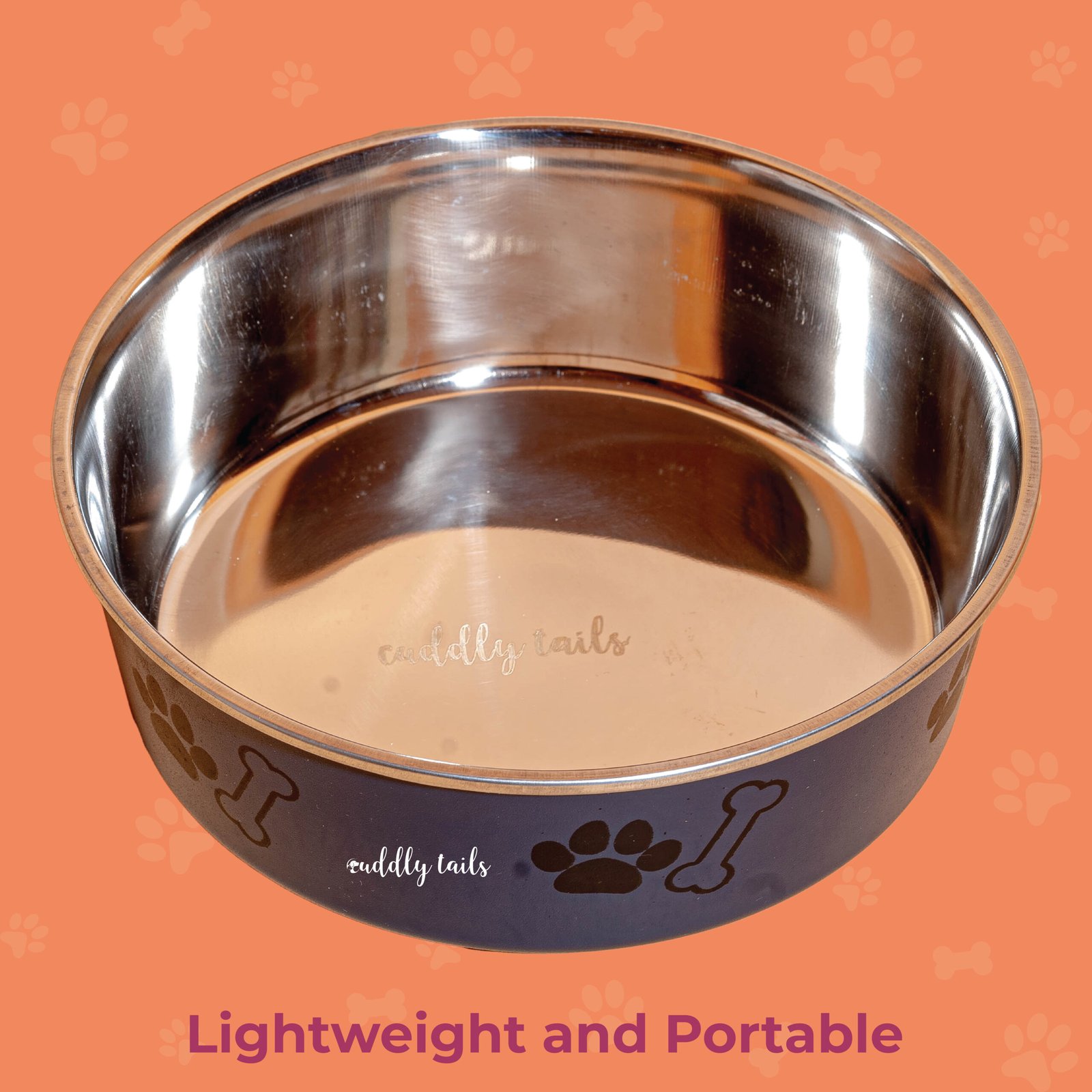 CuddlyTails Anti-Skid Stainless Steel Paw Bone Printed Bowl – Large (Color May Vary)