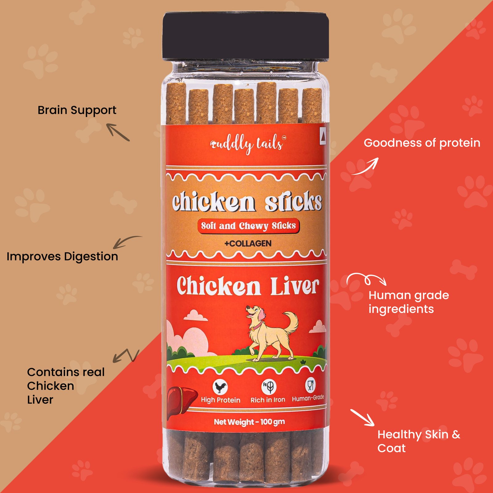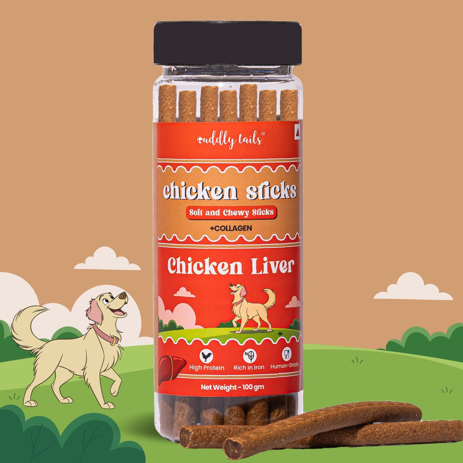 CuddlyTails Chicken Sticks for Dogs- Chicken Liver, Soft & Chewy Treats