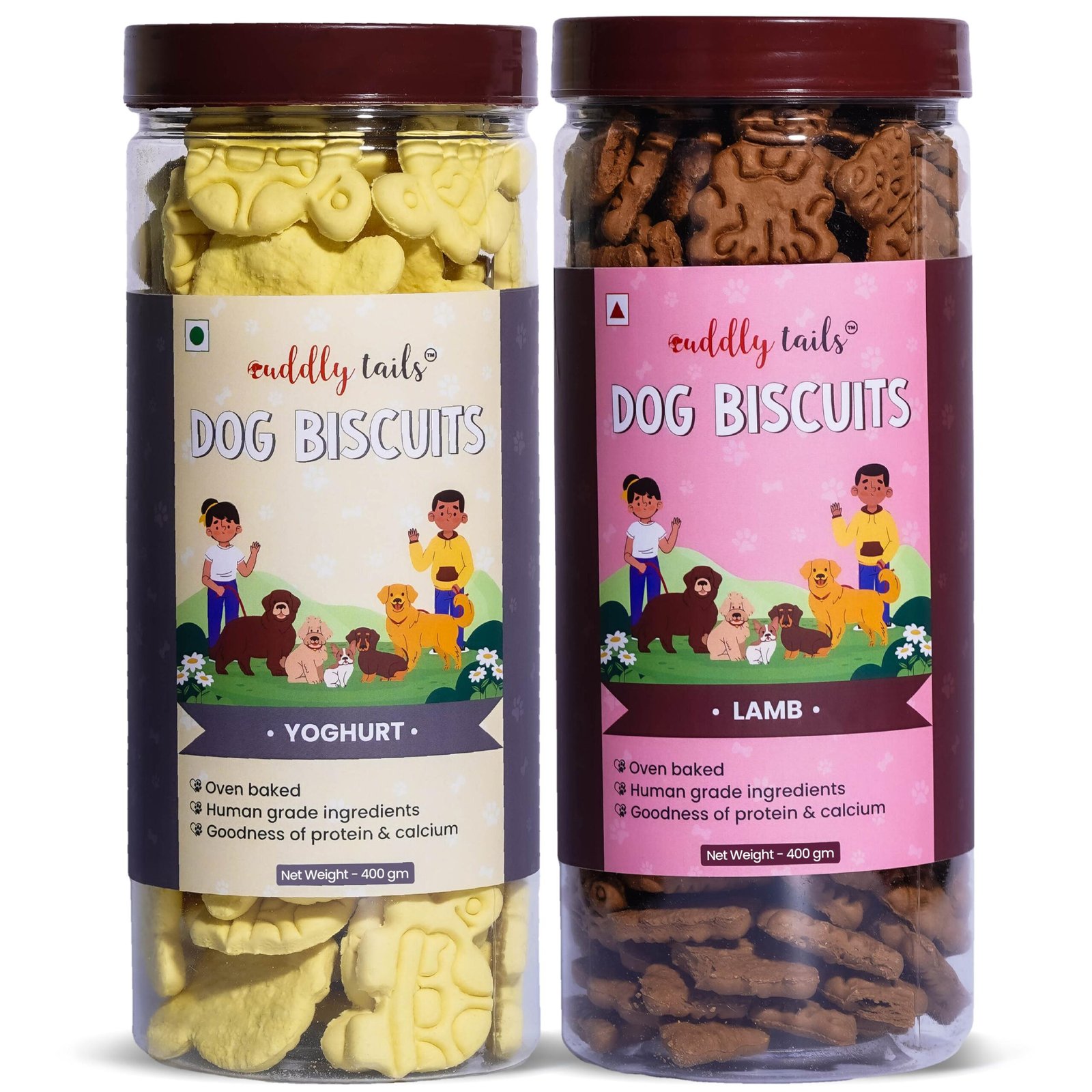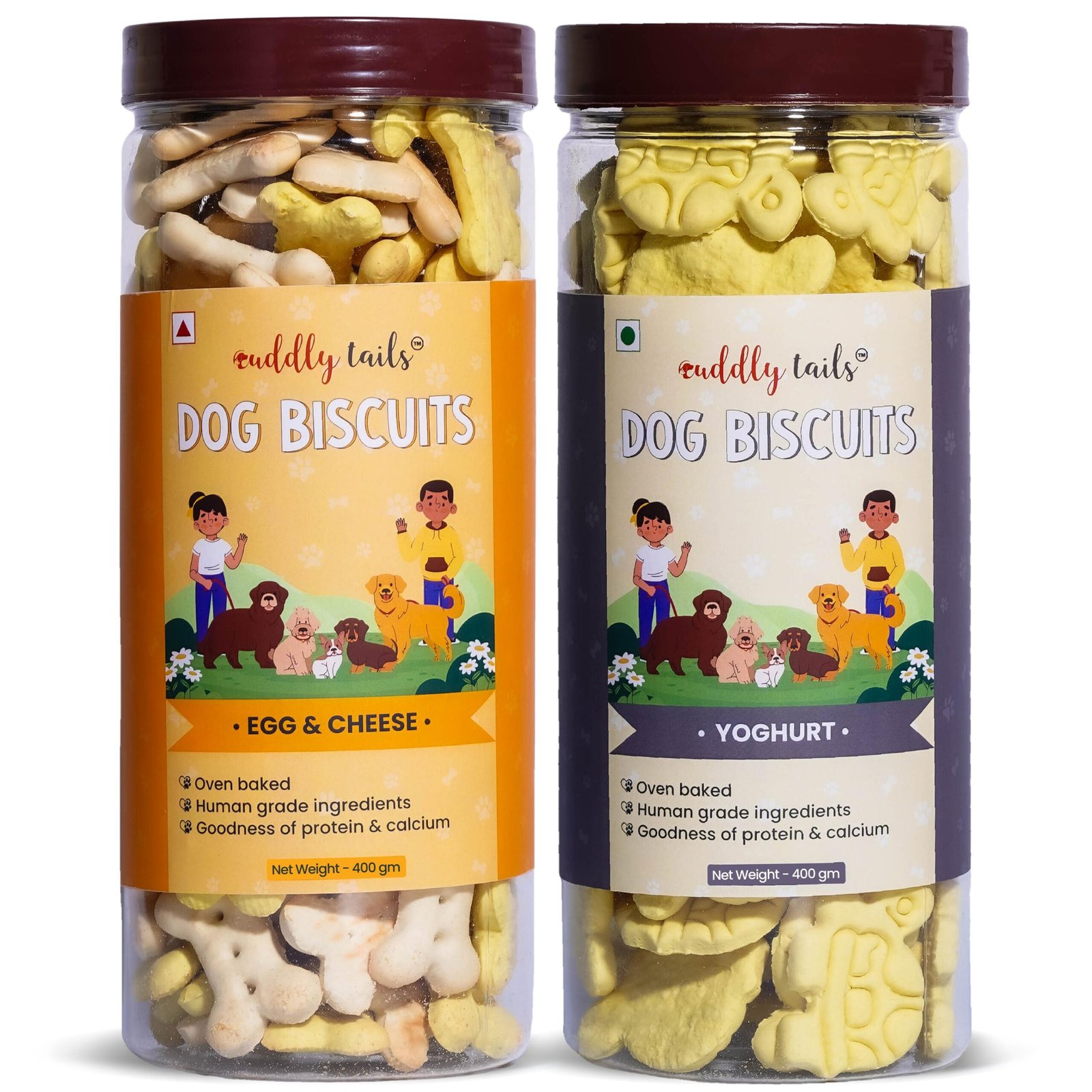 Give your pet the best of taste and nutrition with Cuddly Tails Dog Biscuits Combos. These whole wheat, oven-baked biscuits come in a mix of delicious flavours to keep every treat time exciting. Packed with protein, fibre, and crunch, they support digestion, dental health, and overall vitality — perfect for dogs of all breeds and ages.